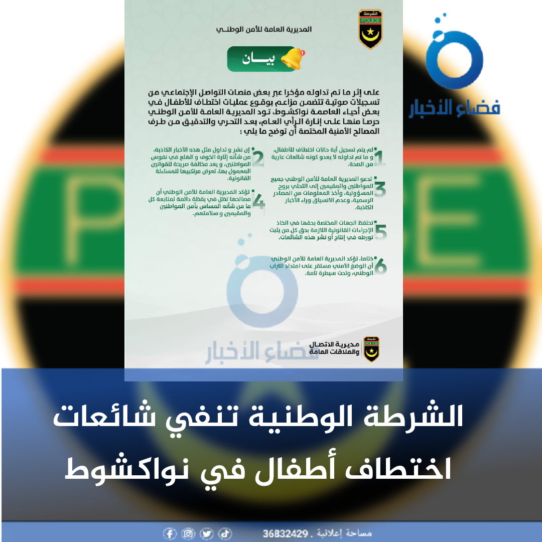 الشرطة الوطنية تنفي شائعات اختطاف أطفال في نواكشوط